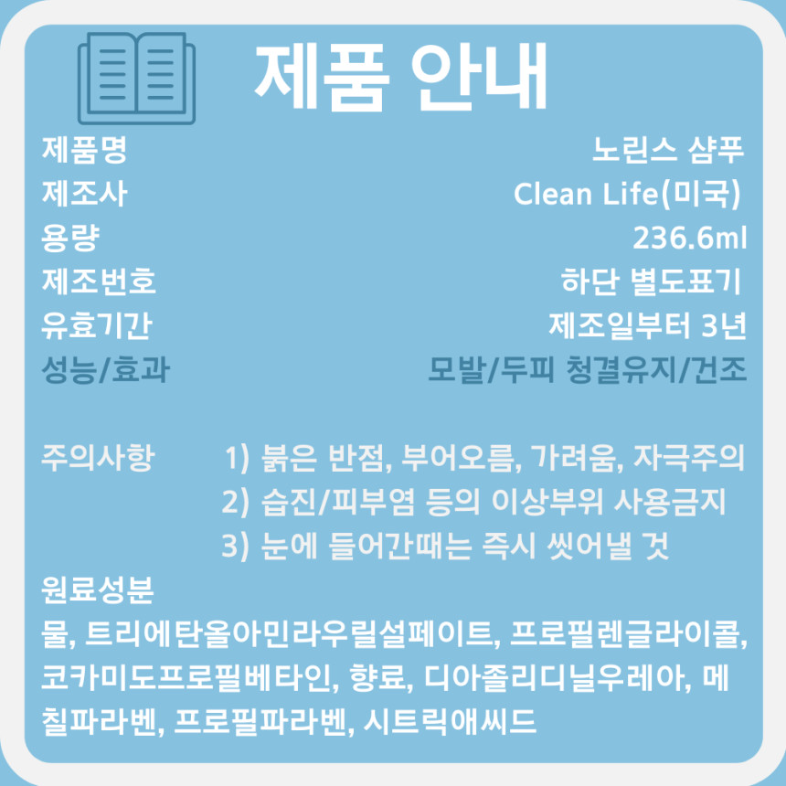 노린스 샴푸 간병용품 환자용 입원환자 와상환자 목욕용품 드라이샴푸 물없이 머리감기기 간병