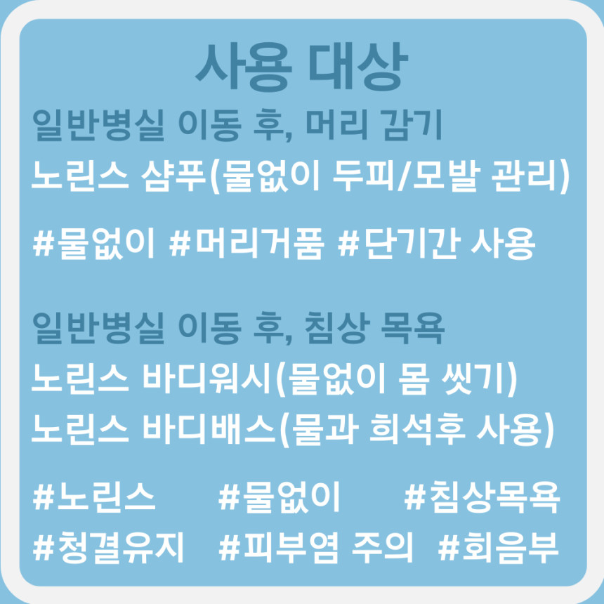 누워있는 환자 목욕 노린스 샤워 수술후 환자씻기기 간병필수 입원 와상환자 편마비 제품